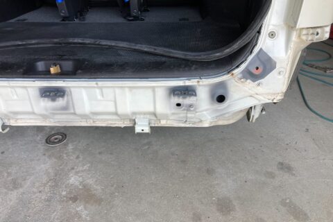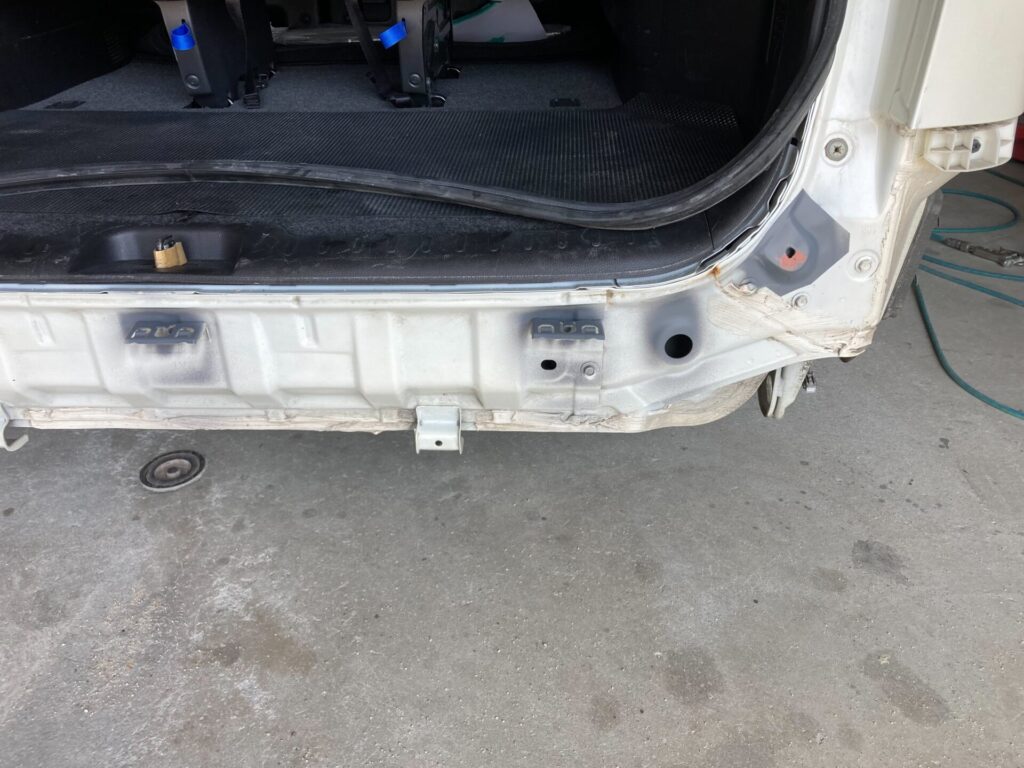 「できるだけ安全に、でも費用も抑えたい」とのご希望に合わせて、リアバンパー交換+バックドア・バックパネル板金塗装で修復することになりました。