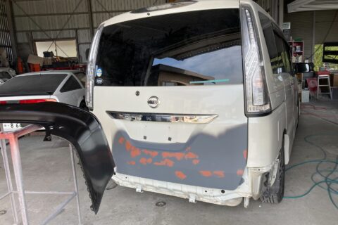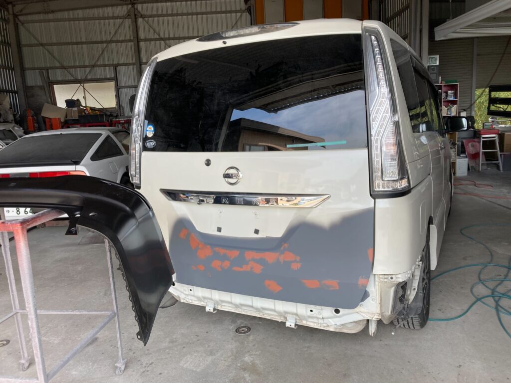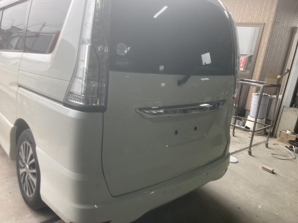 【セレナ修理事例】佐賀市のお客様|リアバンパー交換+バックドア・バックパネル板金塗装で対応