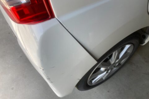 リアバンパーは交換が最適と判断。右クォーターパネルとバックパネルは板金で修復可能と判断し、丁寧に叩き出してパテで整形。塗装で色味を合わせ、自然な仕上がりを実現しました。
