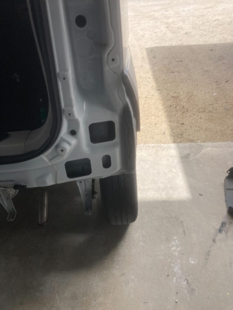 まずはリアバンパー、右クォーターパネル、バックパネルの損傷具合を丁寧に確認。凹みやキズの深さを見極め、交換か板金修理か最適な方法を判断しました。