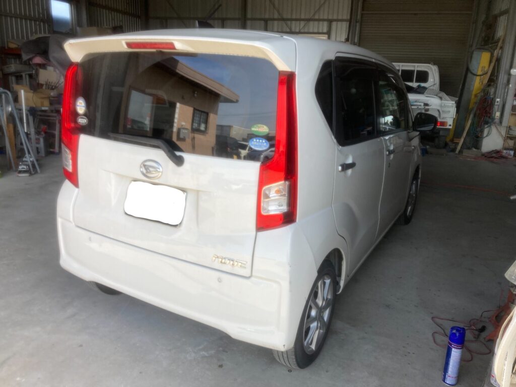 【ムーヴ修理事例】佐賀市のお客様|リアバンパー交換+右クォーターパネル・バックパネル板金塗装で対応