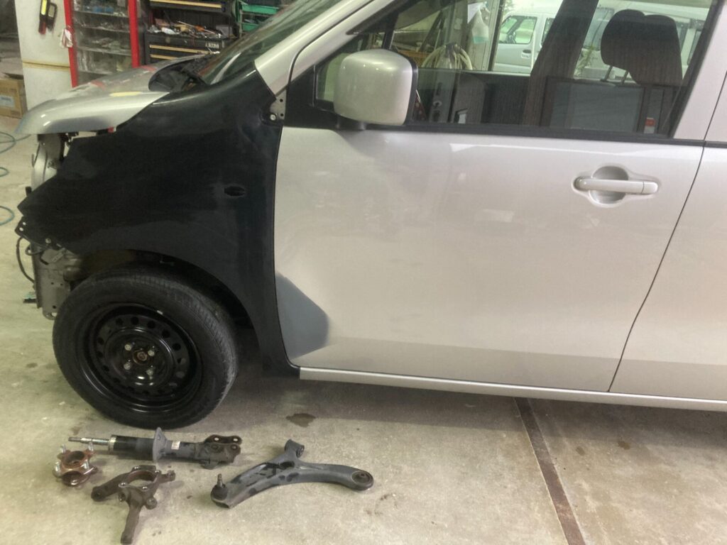 【板金塗装&足回り修理】佐賀市|スズキ ワゴンR|フロント周りの損傷をまとめて修復