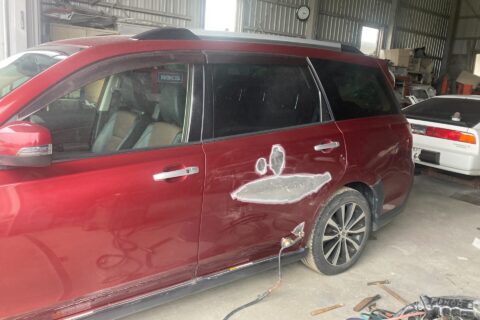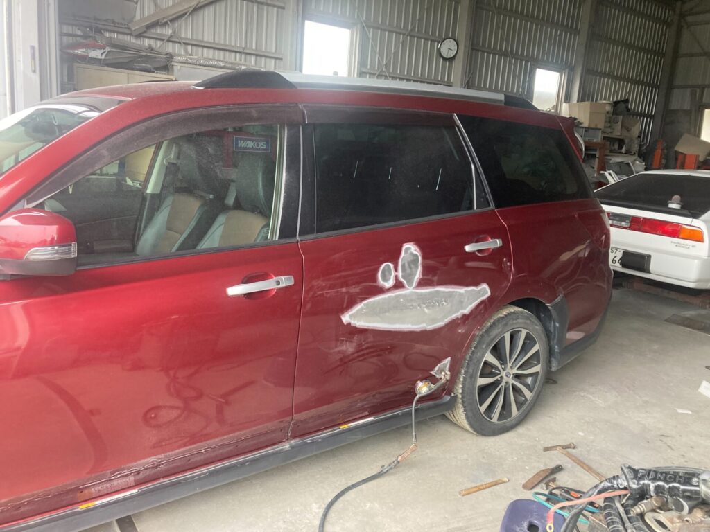 そんなお客様のご希望に沿って、左リアドアは板金修理で対応することにしました。