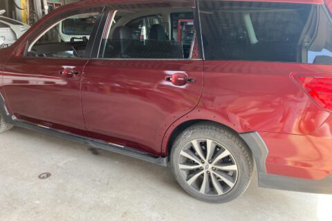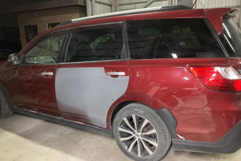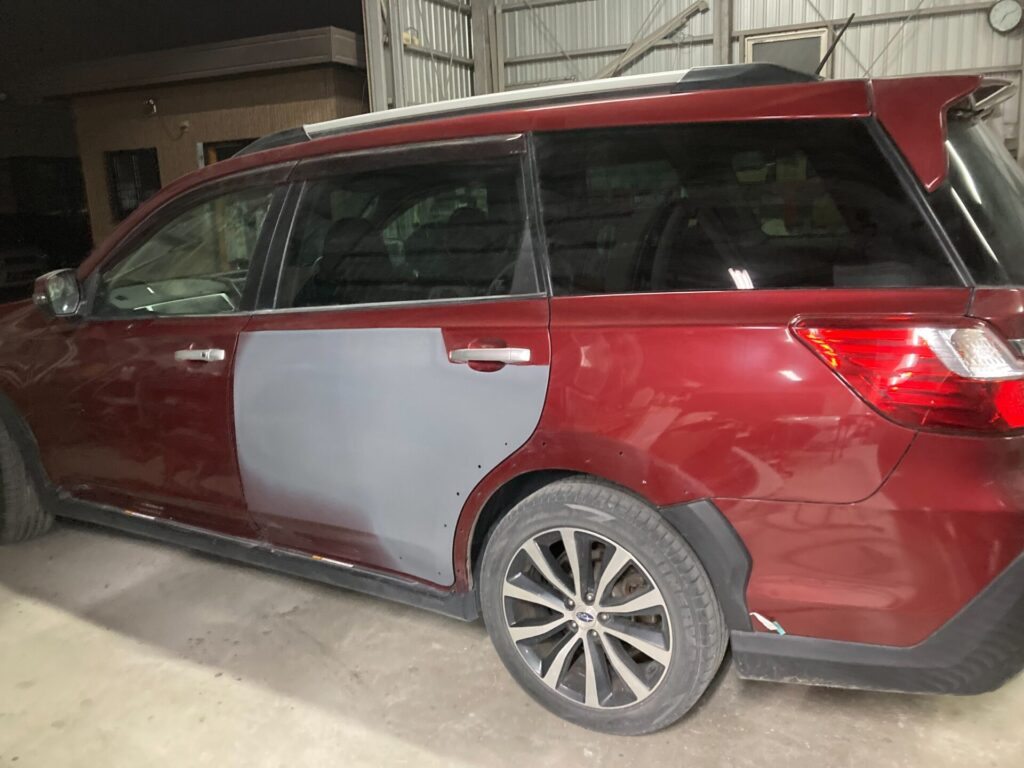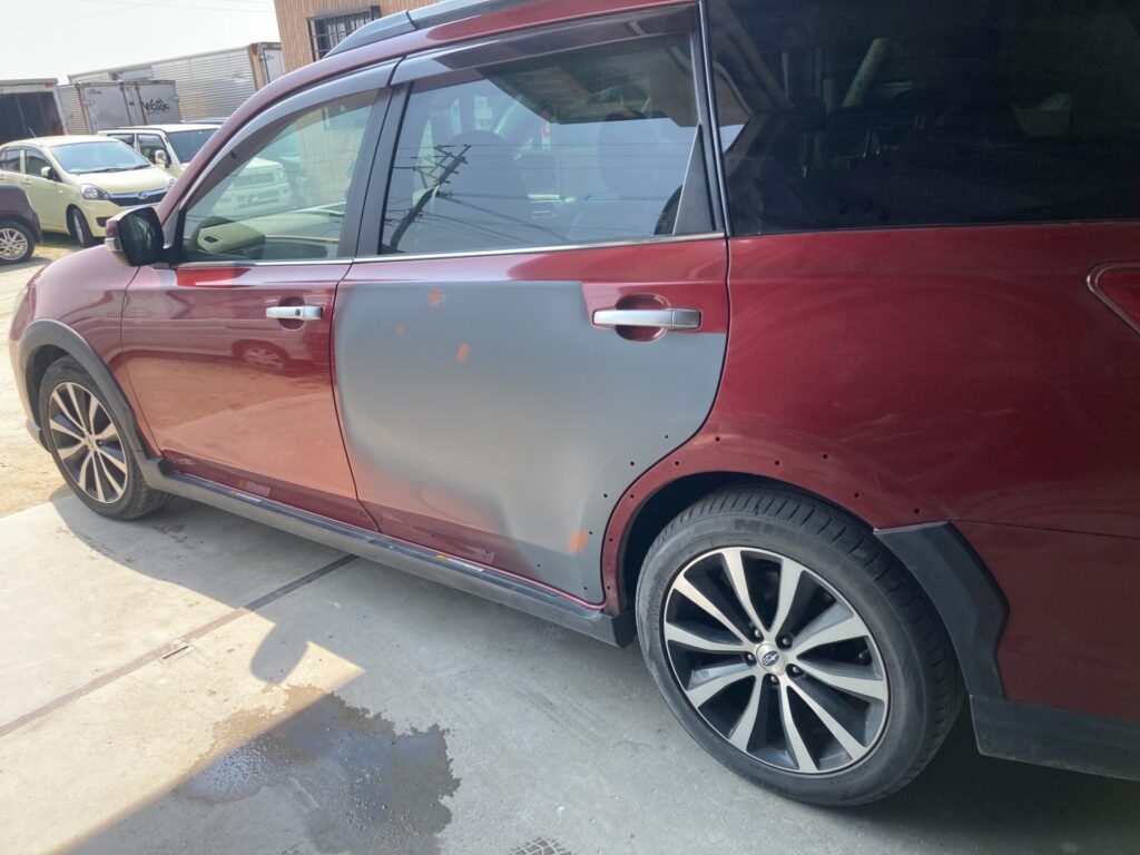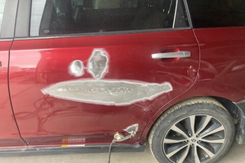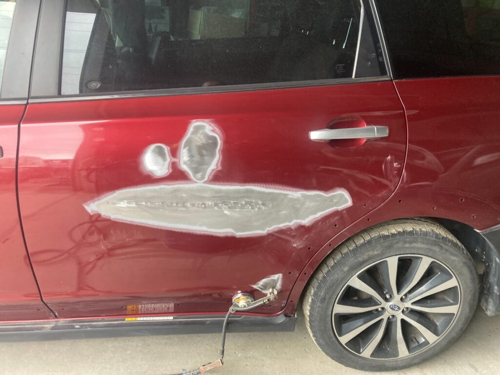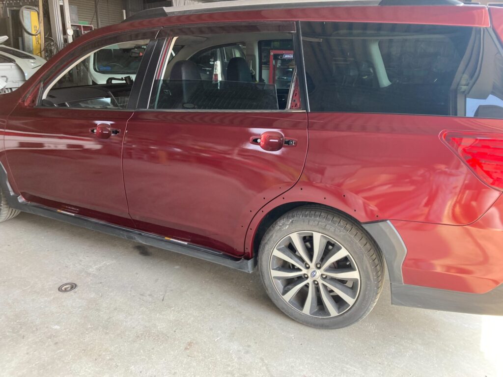 【車キズ修理】佐賀市のお客様|スバル クロスオーバーセブン|左リアドアの凹みを板金塗装