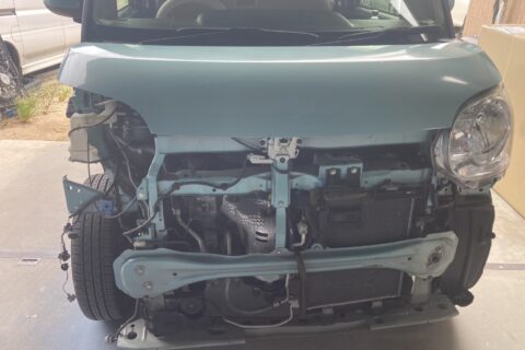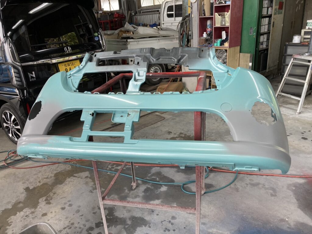 【車修理】佐賀市|ダイハツ キャンバス|フロントバンパー・フロントフェンダーの凹みを板金塗装で対応