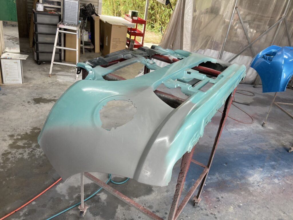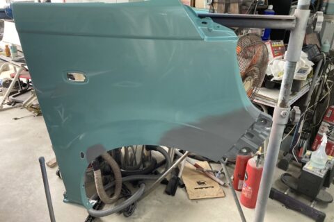 丁寧に叩き出して形を整え、パテで成形。塗装で周囲のパネルに違和感が出ないよう色味を調整しました。