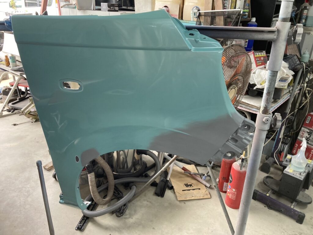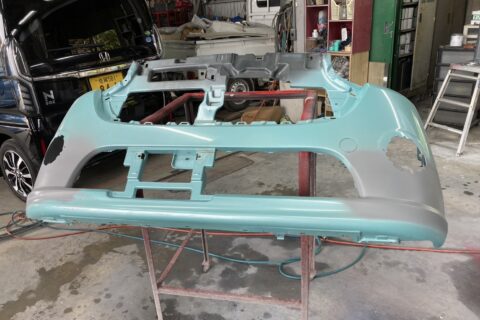 フロントバンパーとフェンダーに塗装を施し、周囲パネルと色味を合わせました。乾燥後、表面の艶や質感を確認し、違和感のない仕上がりを実現。